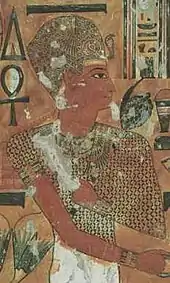 Amenhotep I (/ˌæmɛnˈhoʊtɛp/[3]) (Ancient Egyptian: jmn-ḥtp(w) /jaˌmanuwˈħatpaw/ "Amun is satisfied"; Amarna cuneiform a-ma-an-ha-at-pe or -at-pa), Amenôthes I,[4] or Amenophis I, (/əˈmɛnoʊfɪs/,[5]) from Ancient Greek Ἀμένωφις ,[6] additionally King Zeserkere (transliteration: Ḏsr-k3-R`),[7] was the second Pharaoh of the 18th Dynasty of Egypt. His reign is generally dated from 1526 to 1506 BC. He was a son of Ahmose I and Ahmose-Nefertari, but had at least two elder brothers, Ahmose-ankh and Ahmose Sapair, and was not expected to inherit the throne. However, sometime in the eight years between Ahmose I's 17th regnal year and his death, his heir apparent died and Amenhotep became crown prince.[6] He then acceded to the throne and ruled for about 21 years.[1] Although his reign is poorly documented, it is possible to piece together a basic history from available evidence. He inherited the kingdom formed by his father's military conquests and maintained dominance over Nubia and the Nile Delta but probably did not attempt to maintain Egyptian power in the Levant. He continued the rebuilding of temples in Upper Egypt and revolutionized mortuary complex design by separating his tomb from his mortuary temple, setting a trend in royal funerary monuments which would persist throughout the New Kingdom. After his death, he was deified as a patron god of Deir el-Medina.[8]