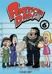 American Dad!'s sixth season premiered on Fox on September 27, 2009. The season consists of nine episodes from production line four (4AJNxx) and nine from production line five (5AJNxx). The entire season was released in the Volume Six DVD box set on April 19, 2011 in Region 1; on June 27, 2011 in Region 2; and July 13, 2011 and Region 4. The season also marked the series move to airing in 16:9 high definition[1] on January 3, 2010 with the episode "Don't Look a Smith Horse in the Mouth".