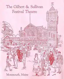 In 1953, the American Savoyards performed for ten weeks over the summer in Cumston Hall, a Victorian theater in Monmouth, Maine.[1] They returned each summer for seven years to Monmouth, generally for ten-week seasons. Their format was eight performances of a different G&S show each week (6 evenings, 2 matinees, no Sunday performances).[6] In 1956, Ronald Bush, the company's principal bass-baritone, gave up his on-stage roles to become its music director.[7][6] The same year, Company first performed Utopia Limited, probably the first professional performances of this work in North America since 1894. In 1957, Raymond Allen took over the comic leads when the Knapps left the company.[6] In 1958, the company added three non-G&S operettas, and in 1959 they added The Grand Duke, in its North American professional premiere. That summer, the company performed four other G&S shows and five non-G&S shows in Monmouth. It was the company's last summer in Maine.[8][9]