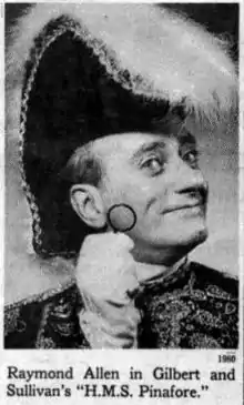 The company continued performing in New York (including at the Jan Hus, Shakespearewrights Theatre, Greenwich Mews, Actor's Playhouse, Brooklyn Academy of Music and other venues) and toured elsewhere in the United States.[8] By 1965, the company was having financial difficulties, and Raedler was ultimately unable to hold it together. Its final performance was on December 31, 1967, at the Jan Hus theatre. Not long after the company closed, a new professional Gilbert and Sullivan company grew up in residence at the Jan Hus, the Light Opera of Manhattan (LOOM). The company's then principal comic, Raymond Allen, joined LOOM,[10] and Raedler sold many of the company's costumes and stage properties to the new company.[5]