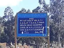 The Ethiopian People's Democratic Movement (EPDM), the precursor of ANDM, was founded by former members of the Ethiopian People's Revolutionary Party (EPRP) and supported by the Tigrayan People's Liberation Front (TPLF).[4] It was originally based in Waghimra in Wollo Province, and waged an armed struggle against the Derg in that area starting in 1982. EPDM convened its first organizational conference in Jerba Yohannes, Waghimra, in November 1983. During the Ethiopian civil war, its military headquarters were located in a cave in Melfa (Dogu'a Tembien). In 1989 EPDM and its long-time ally TPLF united to form the Ethiopian People's Revolutionary Democratic Front (EPDRF).[4] At its third organizational conference in 1994, the EPDM changed its name to Amhara National Democratic Movement (ANDM), marking its transition from a pan-Ethiopian movement to an ethnic party.[4] In the May 2010 Regional State Council elections, the ANDM won all 294 seats in the Amhara Region.[5]