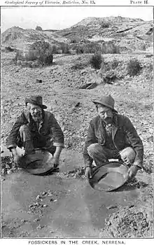 In May 1852, a separate verifiable discovery of gold was made at Daisy Hill.[7] During the Victorian gold rush era, the location quickly became known as an extremely lucrative diggings, and tens of thousands of miners rushed to the area. Between 1852 and 1855, gold was found at a number of locations.[8]