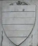 Their coat of arms consists in a gold shield with three red stripes on it. The stripes started with the red one and then alternated with the gold stripes. After some years there was a slight modification; the shield started with the gold stripe and then always alternated with the red stripes.