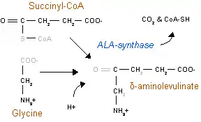 - succinyl-CoA + glycine δ-aminolevulinic acid + CoA + CO2