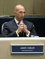 Amir Omar was the City Councilman for Place 7 in Richardson, Texas. Omar is believed to be the first Muslim elected to political office in North Texas.[1] Omar was elected to the Richardson City Council, Place 7 in May 2009, defeating incumbent Dennis Stewart by 51.54% to 48.46%.[2]