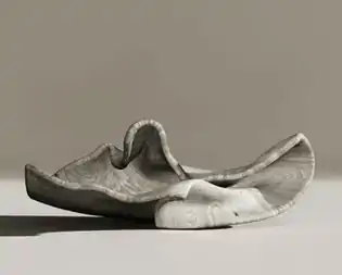 In "Formal Matter," Zaki's encompassing "Rocks" suite (e.g., Rock #29) depicts dramatically silhouetted, coastal outcroppings that Zaki isolates against grey skies, imbuing them with both the grandeur and monumentality of large abstract sculptures and a sense of the fantastical or suspect, which itself is troubled by the abundance of surface detail.[17][34] The "Carvings" works (e.g., Carving #12) stretch believability further, isolating what appear to be gnarled, meticulously carved wood forms resembling waves, seed pods, or shells, that are actually flat planks, photographed and digitally manipulated.[17][34] Critics suggested the work of these series recalled, and perhaps reflected ironic takes on, the work of Bernd Becher and Hilla Becher, Karl Blossfeldt, Imogen Cunningham, Carleton Watkins, and Edward Weston.[76][34] Zaki's subsequent "Getting Lost" series (2018) features hyper-resolution prints of trees set against night-black backdrops that digitally intertwine two trees in intimate pairings, sometimes with startling color effects.[77]