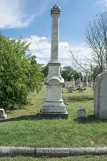 Amos Kendall died at dawn at his home in the Stickney Mansion on Friday, November 12, 1869, and was interred in Glenwood Cemetery in Washington, D.C.[83]