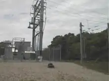 Eighteen paralleling stations are located at approximately six mile intervals[6] along the line. Each contains a single autotransformer (with the exception of Roxbury, which has two), automatic circuit breakers, motor-operated air switches, and a control shed. The autotransformers are rated at 10 MVA, 1.2% impedance, two winding, 27.5 kV.[7]