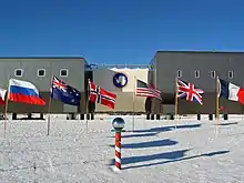 ![]() The Amundsen–Scott Station in 2009. In the foreground is Destination Alpha, one of the two main entrances. | |