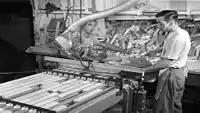 When metals were scarce during World War II, Andersen began producing windows using parts less metal and other material to support the war effort. Andersen Corporation also made wooden ammunition boxes for the war effort, which resulted in "Excellence in Production" ("E") awards from the United States Army, and United States Navy.[5]