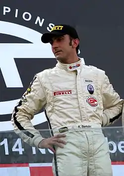 Andrea Bertolini (born 1 December 1973 in Sassuolo) is an Italian professional racing driver currently driving for AF Corse in the FIA World Endurance Championship. He is the official test driver of the Maserati factory. Bertolini began racing at a young age, working as the youngest ever test driver for Ferrari at 19, followed by work in the experimental and development department. He also participated in the development of the Maserati MC12,[1] in which he has enjoyed racing success winning for three times the FIA GT Championship in GT1 class, and also claiming the first edition of the FIA GT1 World Championship. He won the WEC championship in GTE Am category in 2015 and in the same year he won the 24H of Le Mans in the same class.