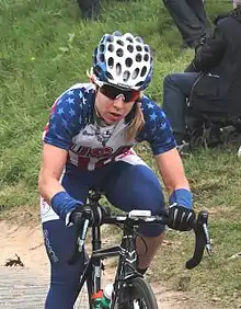 Andrea Dvorak (born October 9, 1980) is an American professional racing cyclist.[3] Dvorak was educated at the University of Virginia, where she graduated in 2003 with a B.A. in Biology and Spanish, and graduated with a Juris Doctor from Virginia School of Law in 2006. Before becoming a cyclist, Dvorak was a triathlete and swimmer, winning a national triathlon title whilst at university and training as a triathlete at the United States Olympic Training Center in the summer of 2003. She turned professional after graduating from law school. She is married to Peter Hufnagel, a teacher at The Miller School of Albemarle in Charlottesville, Virginia.[1]