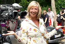 Andrea Kiewel (née Mathyssek, born 10 June 1965 in East Berlin) is a German television presenter and former competitive swimmer. She is the current presenter of ZDF Fernsehgarten and ZDF Fernsehgarten on Tour.[1][2] Andrea usually presents 'Willkommen', the ZDF new year open-air show live from Berlin[3]