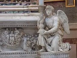 The statue of an Angel (1494–1495) was created by Michelangelo out of marble. Its height is 51.5 cm. It is situated in the Basilica of San Domenico, Bologna.