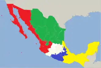 The polity of the Anglican Church of Mexico is episcopal, as is true of all other Anglican churches. The church maintains a system of geographical parishes organized into dioceses. There are 5 of these, each headed by a bishop.[3] Each diocese is divided into archdeaconries, each headed by a senior priest. The archdeaconries are further subdivided into parishes, headed by a parish priest. Several of the dioceses are named in Spanish merely for a compass direction — del Occindente, del Norte, del Sureste — which translate directly as "of the West" &c.[5] However, the Episcopal Church and other English-language Anglican Communion sources instead render these names with "Mexico" — e.g. "of Western Mexico" — so these are the forms used on the English-language Wikipedia.
