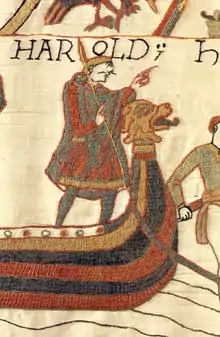 Art from this period, including the Bayeux Tapestry indicate that men continued to wear leggings and stockings. Leg coverings often cover the shoes and probably covered the foot. The material was likely made of woven cloth as knitting would not be introduced in England until the sixteenth century.[60][61]