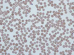 Anisocytosis is a medical term meaning that a patient's red blood cells are of unequal size. This is commonly found in anemia and other blood conditions. False diagnostic flagging may be triggered on a complete blood count by an elevated WBC count, agglutinated RBCs, RBC fragments, giant platelets or platelet clumps. In addition, it is a characteristic feature of bovine blood.