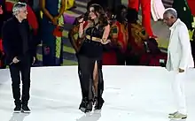 In 2016, Anitta made her debut as a TV hostess on the third season of Multishow program Música Boa Ao Vivo.[50] The singer was also featured on a remix of the song "Ginza", by singer J Balvin.[7] In August 2016, she released a single titled "Sim ou Não" featuring Colombian singer Maluma, and performed at the 2016 Summer Olympics opening ceremony along with singers Caetano Veloso and Gilberto Gil after the parade of delegations.[51] The next month, she signed a contract with talent agency William Morris Endeavor.[52] In November 2016, she won the Best Brazilian Act category at the 2016 MTV Europe Music Awards.[53]