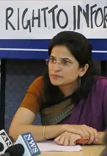 Anjali Bhardwaj (born 1973) is an Indian social activist working on issues of transparency and accountability. She is a co-convenor of the National Campaign for People's Right to Information (NCPRI)[1] and a founding member of Satark Nagrik Sangathan.[2] She works on issues related to right to information, Lokpal, whistleblower protection, grievance redress, and right to food.