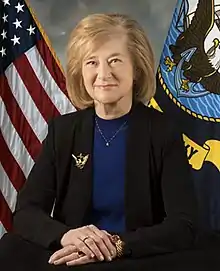 Ann Elisabeth Rondeau[3] is a retired United States Navy vice admiral. During her tenure in the navy, she received two Defense Distinguished Service Medals, the Navy Distinguished Service Medal, and four Legion of Merit awards.[4] Rondeau was the president of National Defense University and, after serving as the president of the College of DuPage,[5][6] was chosen by United States Secretary of the Navy Richard V. Spencer to be president of the Naval Postgraduate School in 2019.[7]