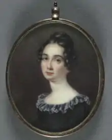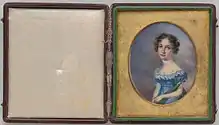 In 1811, at age 20, Anna participated in the first exhibition at the Pennsylvania Academy of the Fine Arts, which was also her first major exhibition. There, she exhibited a still life in oils. Three years later, in 1814, she exhibited her first group of three miniatures[6] at the Pennsylvania Academy's annual exhibition, two years after her father showed his last miniatures there. This was a signal to the public that Anna would assume commissions for portrait miniatures that her father would henceforth decline. But these expectations proved to be unrealistic when the War of 1812, fought mainly at sea, moved closer to home. On August 24, British troops marched into Washington, D.C., and within 24 hours systematically torched major government buildings. As the British advanced on Baltimore, the annual exhibition at the Pennsylvania Academy had just concluded. Twelve years later, in 1824, Anna and her sister Sarah Miriam became the first women elected as academicians to the Pennsylvania Academy of the Fine Arts.[7]