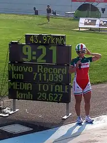 ![]() Mei after breaking the 24h velodrome record in 2011 | |