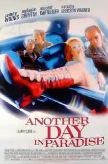 Another Day in Paradise is a 1998 American crime drama film directed by Larry Clark and starring James Woods, Melanie Griffith, Vincent Kartheiser and Natasha Gregson Wagner. It was released by Trimark Pictures. It is based on the novel Another Day in Paradise written by Eddie Little. The movie won the Grand Prix award at the 1999 Festival du Film Policier de Cognac.
