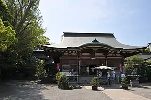 Anraku-ji (安楽寺) is a Buddhist temple of the Kōyasan Shingon-shū in Kamiita, Tokushima, Japan. Temple 6 on the Shikoku Pilgrimage, the main image is of Bhaisajyaguru (Yakushi Nyōrai). The temple is said to have been founded by Kūkai, who carved the image.[1][2] The Hōjō (1751–1829) has been placed on the cultural properties register.[3] Anraku-ji has played an influential role in the Shikoku Reijōkai (Shikoku Pilgrimage Association), providing its first head in 1956.[4]