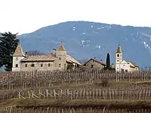 Ansitz Kreit is located in the frazione of St. Michael in the municipality of Eppan an der Weinstraße.[1][2] The main house was built by a farmer named Elias Leys around 1596, converting the farm into an estate.[3] A Catholic chapel, dedicated to Saint Anthony, was built in 1661.[4]