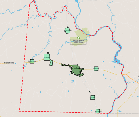 Clickable map of Anson County, North Carolina With Municipal labels (interactive map)