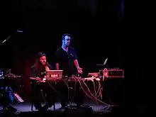 Pateras' solo album, Mutant Theatre (January 2004), was rated by AllMusic's staff writer as three-and-a-half stars out-of five.[10] For the recording he composed the tracks, provided piano, prepared piano and vocals, and conducted the session musicians as well as co-producing the work.[10] Pateras and Fox' second collaborative album, Flux Compendium (March 2006), had Couture observe, "the two electronicians toned down the harsh noise in favor of a more discreet – and intriguing – sound palette. It seems these two can build impromptu compositions out of any type of sound: breath, belches, coins, laughs, doors, and yes, even pure electronic tones."[11] Also in that year, Gauticle, an album was released by Pateras joined by Sean Baxter on drums and David Brown on guitar, which had been recorded two years earlier.[12] Couture noticed, "[they] play their instruments in unorthodox ways, looking for quiet, delicate sounds. Pateras spends most of his time inside the piano, hitting, scraping, and rubbing its strings."[12]