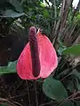 Anthurium andreanum 'Royal Flush' is a cultivar from the species Anthurium andraeanum. It has hot pink spathes with a dark spadix that has tones of pink. The leaves are a dark green.