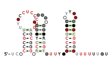 ![]() Consensus secondary structure and sequence conservation of Burkholderia RNA 7 (anti-hemB) | |