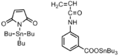Bacteria:Gram-positive; Gram-negative | Tin moiety on the polymer surface interacts with the cell wall. | Copolymerization of antimicrobial monomer and styrene decreases the potency of the monomer.[7] |