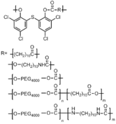 This method involves using chemical reactions to incorporate antimicrobial agents into the polymeric backbones. Polymers with biologically active groups, such as polyamides, polyesters, and polyurethanes are desirable as they may be hydrolyzed to active drugs and small innocuous molecules. For example, a series of polyketones have been synthesized and studied, which show an inhibitory effect on the growth of B. subtilis and P. fluorescens as well as fungi, A. niger and T. viride. There are also studies which incorporate antibiotics into the backbone of the polymer, as shown in Figure 3.[24]