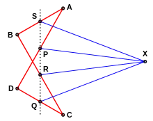 The antiparallelogram is an important feature in the design of Hart's inversor, a linkage that (like the Peaucellier–Lipkin linkage) can convert rotary motion to straight-line motion.[10] An antiparallelogram-shaped linkage can also be used to connect the two axles of a four-wheeled vehicle, decreasing the turning radius of the vehicle relative to a suspension that only allows one axle to turn.[2] A pair of nested antiparallelograms was used in a linkage defined by Alfred Kempe as part of his universality theorem stating that any algebraic curve may be traced out by the joints of a suitably defined linkage. Kempe called the nested-antiparallelogram linkage a "multiplicator", as it could be used to multiply an angle by an integer.[1]