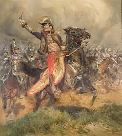 Antoine-Charles-Louis, Comte de Lasalle (10 May 1775, Metz – 6 July 1809, Wagram) was a French cavalry general during the Revolutionary and Napoleonic Wars, often called "The Hussar General". He first gained fame for his role in the Capitulation of Stettin. Over the course of his short career, he became known as a daring adventurer and was credited with many exploits. Eventually, he fought on every front and was killed at the Battle of Wagram.