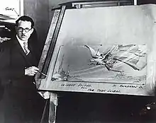 The Lubin Company hired him to paint and design sets in 1913, in Philadelphia;[3] and he also worked on films for Vitagraph and Pathé. At the Pathé company, he developed his innovative techniques, along with William Cameron Menzies, in the way of using continuity sketches. His method of presenting a series of sketches of all the film’s sets would later become standard practice among Art Directors, particularly with Menzies (his assistant in 1917, on The Naulahka). The cinematographer Arthur Miller remembered Anton Grot:
