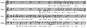 - The Kyrie–Gloria Mass for double choir, BWV Anh. 167, for which Lotti was suggested as composer in the second half of the 19th century,[22][23] an attribution that was thought possible until the late 20th century,[18][19] has more recently been attributed to other composers.[24][25]