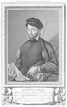 Antonio Pérez (1534–1611) was a Spanish statesman, secretary of king Philip II of Spain.