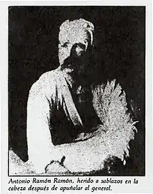 Ramón, in turn, stopped the attack and tried to run away, only to be captured by an off-duty prison guard named Perfecto Salazar Acevedo. When Ramón saw himself surrounded and all escapes blocked, he drank the bottle of strychnine he was carrying, but vomited most of it and was unharmed. Once in custody, Ramón vehemently denied other parties' involvement in the assassination, and the worker's held public campaigns to raise money for his defense. He was eventually sentenced to five years in prison.[2]