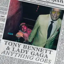 Bennett sang "Anything Goes" on his album Strike Up the Band (1959), which Gaga heard when she was 13 years old. She thought "Anything Goes" was a funny track with a "real sexy, powerful vibe to it, and it's just because we're having fun singing it."[20] Gaga and Bennett switched lyrics. The recording was described by Bobby Olivier of The Star-Ledger as "smooth as silk...Gaga's voice, when stripped of its bells and whistles, showcases a timelessness that lends itself well to the genre."[21] Instrumentation comes from horns, cymbals, and saxophones.[22] Photographer Steven Klein shot the album covers developed the cover art showing Gaga and Bennett in a newspaper cut.[19]