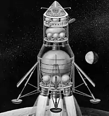 - Lunar Surface Rendezvous: Two spacecraft would be launched in succession. The first, an automated vehicle carrying propellant for the return to Earth, would land on the Moon, to be followed some time later by the crewed vehicle. Propellant would have to be transferred from the automated vehicle to the crewed vehicle.[37]