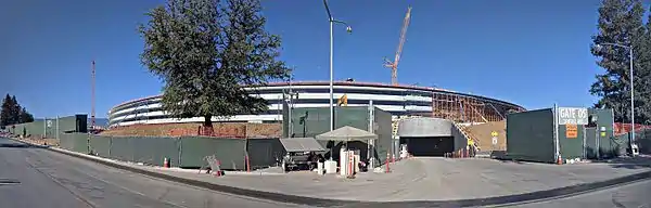 Originally expected to break ground in 2013 and open in 2015, the project was delayed and started in 2014.[24][25] The campus opened for workers in April 2017, despite continued construction work.[26] This was followed by the first event in the Steve Jobs Theater, which took place on September 12, 2017.[27] The Apple Park Visitor Center opened five days later, on September 17, 2017.[28]