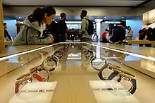 Pre-orders for the Apple Watch began on April 10, 2015, with the official release on April 24.[63] Initially, it was not available at the Apple Store; customers could make appointments for demonstrations and fitting, but the device was not in-stock for walk-in purchases and had to be reserved and ordered online. CNET felt that this distribution model was designed to prevent Apple Store locations from having long line-ups due to the high demand.[64][65] Selected models were available in limited quantities at luxury boutiques and authorized resellers.[66] On June 4, 2015, Apple announced that it planned to stock Apple Watch models at its retail locations.[65] On August 24, 2015, Best Buy announced that it would begin stocking Apple Watch at its retail stores by the end of September.[67] Both T-Mobile US and Sprint also announced plans to offer Apple Watch through their retail stores.[68]