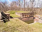 There was a stone cutting mill just at this point, on the upstream side. It cut stone from Marble Quarry (above White's Ferry on the canal), and Cedar Point Quarry (which was around Violette's lock, one lock downstream), as well as the quarries of Seneca sandstone. It was powered by canal water diverted into a mill race to a turbine.[4]:57