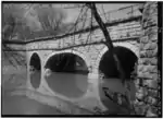 This "unofficial" aqueduct crosses Broad Run in Montgomery County. It was originally two stone culverts 16 feet (4.9 m) long, and listed as Culvert #44½. Construction originally began in 1829, on section 53, and after several contractors worked on it, was completed in 1833. It later washed out in 1846. A wooden trunk was put in to keep navigation open. It deteriorated until it could not be repaired, and was rebuilt 1856.[3]:251 Troops burned it during the American Civil War, and it was replaced again.[4]:66 The wood rotted and constantly had to be replaced. Although it was an aqueduct, the company records still listed it as a culvert.[2]:80
