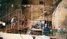 ![]() Excavation at the cave | |