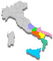 Abruzzo, Apulia, Basilicata, Calabria, Campania, Molise, Sicily | 100,000[1][2][3][4] |
