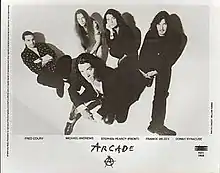 Arcade was an American glam metal supergroup formed in 1992 by ex-Ratt vocalist Stephen Pearcy, Cinderella drummer Fred Coury, and Johnny Angel Guitarist with Talas and Michael Monroe among others. The band featured ex-Sea Hags guitarist Frankie Wilsey, ex-Gypsy Rose guitarist Donny Syracuse, and ex-9.0 bassist Michael Andrews. Its originally proposed name was to be Taboo.[1] The original guitarist Johnny Angel, co-wrote most of the songs on the first 3 albums and was instrumental in the band signing with Epic records.